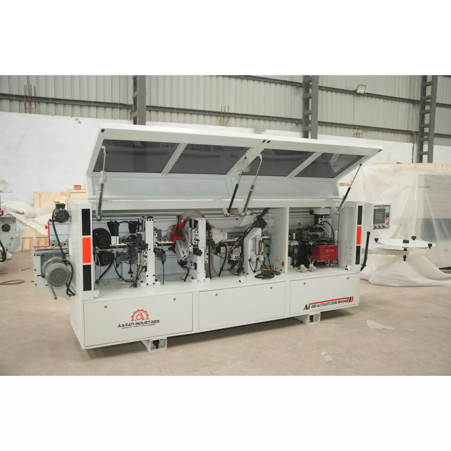 Aarati IndustryAutomatic Edge Bending Machine – AI-280(5-in-1 High-Speed Edge Bander)The AI-280 By Aarati Industry Is A Compact And Efficient Automatic Edge Banding Machine Tailored For Small To Medium-scale Panel Processing Units. Despite Its Smaller Footprint, The Machine Packs 5 Core Edge Banding Functions Along With Optional Cleaning And Buffing For A Professional Finish On Every Panel.✅ Main Functions:Gluing – Applies Adhesive Uniformly For Strong, Consistent Bonding Continue