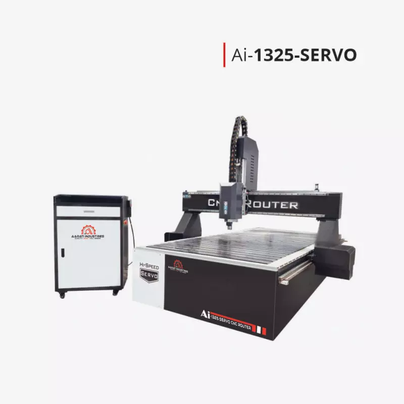 6 KW Easy Servo CNC Router Machine (Imported)Model: 8X4 Air Cooled – Precision CNC Routing For Diverse Materials | Aarati Industry📐 Technical Specifications:FeatureDetailsModel8X4 Air CooledAxis TravelX = 1300 Mm, Y = 2500 Mm, Z = 300 MmRotary Working AreaNot ApplicableAxis Motion SystemX & Y: 25×25 Mm Helical Rack & Pinion Z: Ball Screw 20×10 Mm (Hiwin)Axis Motors & DrivesServo Motors & Drives (Leadsh Continue